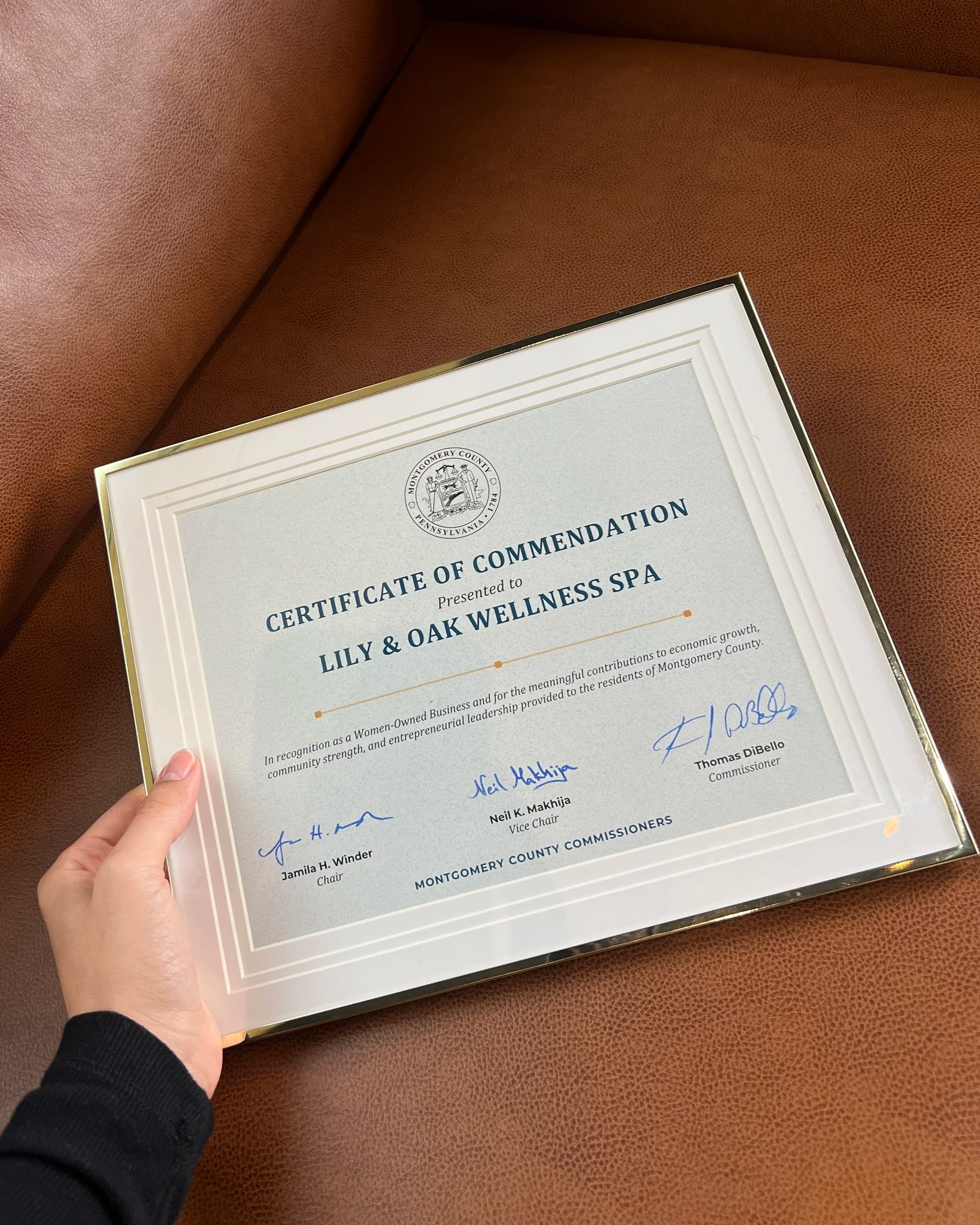 Lily & Oak Wellness Spa is proud to have been awarded a Certificate of Commendation by Montgomery County. This recognition reflects our continued commitment to creating a welcoming space where clients feel supported, confident, and cared for.